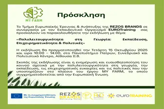 Το Τμήμα Ευρωπαϊκής Έρευνας & Ανάπτυξης της REZOS BRANDS σε συνεργασία με τον Εκπαιδευτικό Οργανισμό EUROTraining σας προσκαλούν να παρακολουθήσετε την εκδήλωση με θέμα: